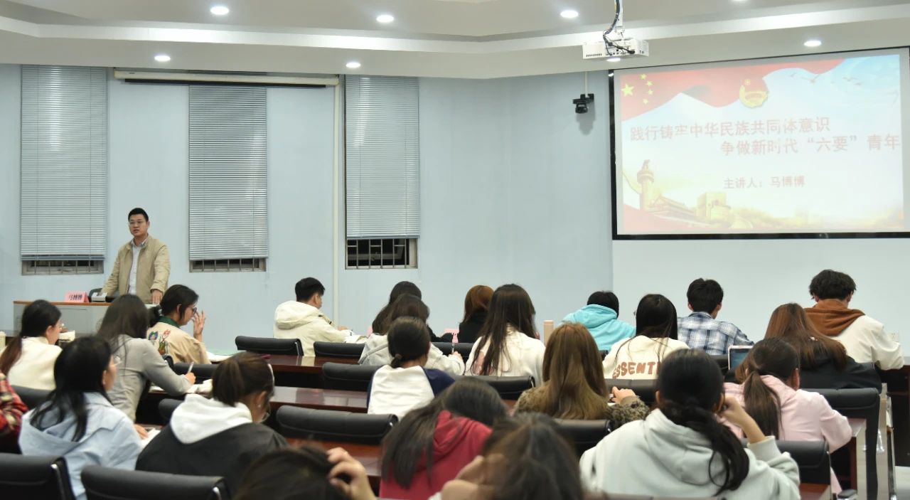 團(tuán)委副書記馬博博為學(xué)員們作了題為《踐行鑄牢中華民族共同體意識(shí),爭(zhēng)做新時(shí)代“六要”青年》的第一講團(tuán)課。他從“鑄牢中華民族共同體意識(shí)的提出及發(fā)展歷程”“深刻領(lǐng)會(huì)鑄牢中華民族共同體意識(shí)的意義”“深刻理解鑄牢中華民族共同體意識(shí)的歷史邏輯”“在實(shí)踐中踐行鑄牢中華民族共同體意識(shí)”和“新征程上青年的使命擔(dān)當(dāng)與鑄牢中華民族共同體意識(shí)”等五個(gè)方面為大家進(jìn)行授課。他強(qiáng)調(diào),作為新時(shí)代的共青團(tuán)員、學(xué)生干部,要堅(jiān)持聽黨話、跟黨走,深入學(xué)習(xí)黨的二十大和三中全會(huì)精神,貫徹落實(shí)習(xí)近平總書記在2024年全國(guó)民族團(tuán)結(jié)進(jìn)步表彰大會(huì)上的重要講話精神,爭(zhēng)做樹立遠(yuǎn)大理想、熱愛偉大祖國(guó)、擔(dān)當(dāng)時(shí)代責(zé)任、勇于砥礪奮斗、練就過(guò)硬本領(lǐng)、錘煉品德修為的“六要”青年。