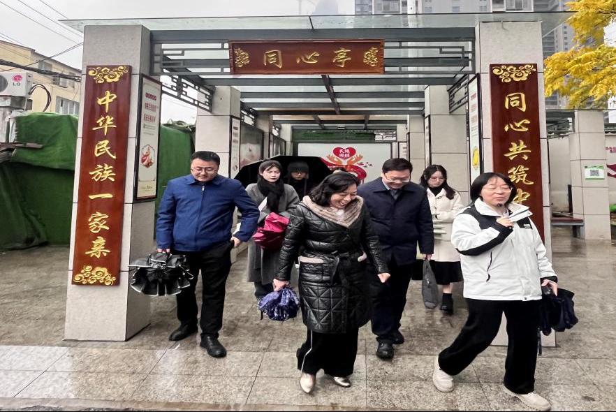 他們步行穿過遠近聞名的廣益橋牛羊肉市場,冒雨前往學院與民權街共建的同心亭長廊參觀。“中華民族一家親,同心共筑中國夢”的對聯映入眼簾,兩旁張貼著鑄牢中華民族共同體意識宣傳海報,旁邊一棵石榴樹枝繁葉茂,象征著民族團結與和諧。大家邊走邊看,邊聽講解員講述,一個個生動的社區民族團結故事激蕩心潮。