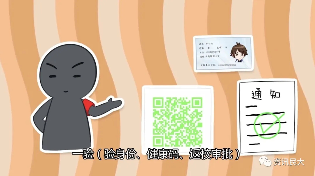 返校途中注意事項。 1.做好旅途防護。乘坐公共交通工具時,須全程佩戴口罩,保持雙手衛生,勤洗手。 2.記錄返校行程。保留好所有公共交通工具的票據、付款記錄,記載搭乘時間、班次和地點,以配合可能的相關密切接觸者調查。 返校當天注意事項。 1.畢業生接站。學校在武昌、武漢、漢口三個火車站安排接站車輛,同學們可以前往免費乘坐。 2.通過南一門、正大門、北二門出入。其他校門封閉。 3.送客車輛即停即走。按照上級有關疫情防控工作要求,乘坐私家車或有親友陪同返校的同學,車輛和親友送至校門口即停即走,不進校園,配合交警部門指揮,避免造成校門前道路擁堵。校內提供通勤車輛,幫助學生運送行李。 4.返校報到流程。進入校門前,在指定通道依次排隊且間隔1米以上,避免擁擠,憑「湖北健康碼」、「民大微碼」及有效證件(身份證、校園一卡通),經人臉識別、體溫檢測正常后進入學校。