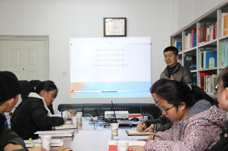 在交流環(huán)節(jié),與會(huì)成員就習(xí)近平的讀書(shū)方法啟示,如何走出舒適區(qū)、克服懶癌等問(wèn)題進(jìn)行交流。張慧慧認(rèn)為自己讀書(shū)的效率偏低,部分書(shū)籍的閱讀沒(méi)有達(dá)到學(xué)以致用的層次,希望能夠進(jìn)一步通過(guò)榜樣的力量激勵(lì)自己沉淀、厚實(shí)。王浩宇表示,處在信息大爆炸的時(shí)代要進(jìn)一步提高對(duì)信息的辨別與處理能力,以自律抵御外界誘惑。黃向陽(yáng)同學(xué)表示,學(xué)會(huì)像習(xí)總書(shū)記一樣從事物從提煉知識(shí)方法和技巧性的東西,用理想信念給自己“洗腦”,將逆水行舟的阻力轉(zhuǎn)化為順?biāo)兄鄣膭?dòng)力。