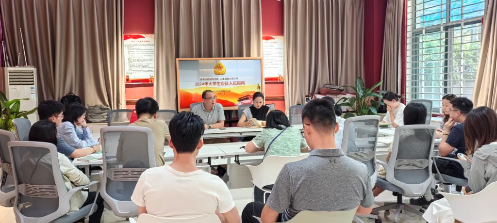 會上,劉甜甜向與會輔導員詳細解讀了應征入伍工作流程、入伍優惠優待政策以及工作要求,并就我校2024屆畢業生中的退伍大學生士兵的優秀事跡進行進一步宣講。方明就本學期征兵工作開展的總體情況及下一步針對2024屆畢業生征兵入伍的工作計劃進行了介紹,他強調,一要再次對2024屆畢業生做好政策宣講;二是做好有意愿參軍入伍畢業生的服務工作,確保入伍學生無后顧之憂;三是提前謀劃,做好下半年的征兵入伍的宣傳與動員。