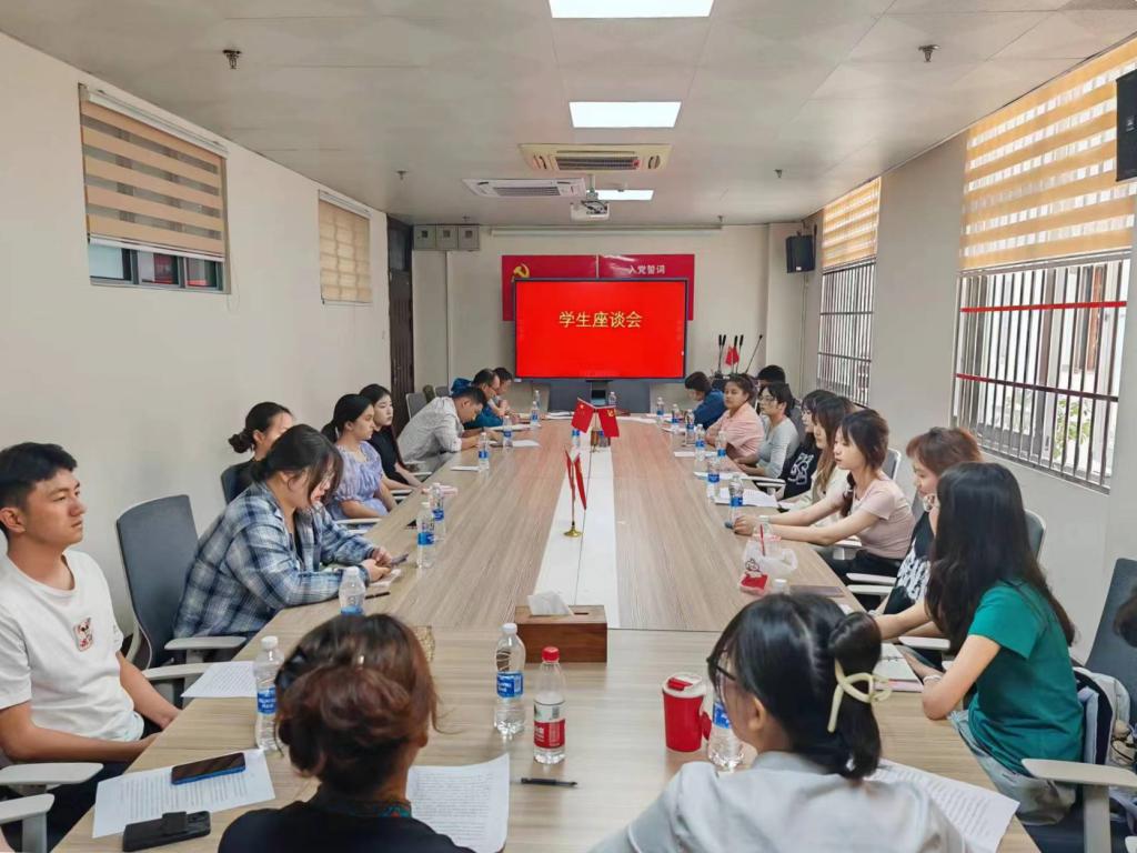 為進(jìn)一步鑄牢中華民族共同體意識(shí),深入開展國(guó)家安全教育,4月25日,學(xué)工部在大學(xué)生活動(dòng)中心四樓會(huì)議室召開專題學(xué)生交流座談會(huì),共話鑄牢教育和國(guó)家安全學(xué)習(xí)體會(huì),同時(shí)深入了解學(xué)生的學(xué)習(xí)生活需求,增強(qiáng)民族團(tuán)結(jié)意識(shí),共同繪制青春夢(mèng)想的美好藍(lán)圖。學(xué)工部副部長(zhǎng)潘宏飛、方明,學(xué)工部教育宣傳科、學(xué)生管理科老師,部分新疆籍輔導(dǎo)員、各民族學(xué)生代表共25人出席此次活動(dòng)。