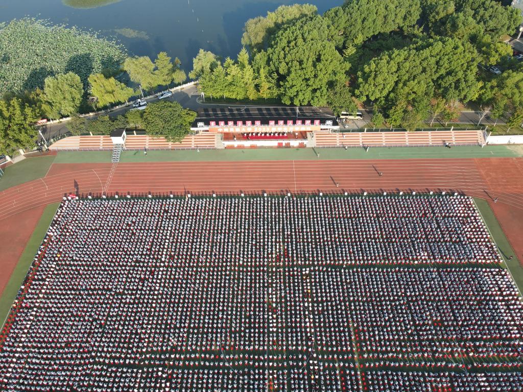 (學通社9月9日電,記者:王科然)9月9日上午,我校2023級新生開學典禮在南湖中心操場隆重舉行,校黨委書記邊境,校黨委副書記、校長李金林及全體在家校黨委常委出席典禮,各職能處室、學院負責人、新生輔導員和來自全國各地的6100余名本科生、1300余名研究生參加了開學典禮。開學典禮上,邊境為新生代表佩戴校徽,李金林致辭并講授“開學第一課”。