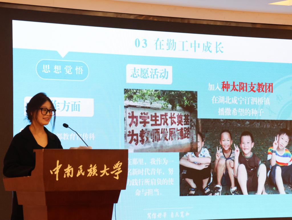 民族學與社會學學院、生命科學學院作為“勤工助學先進集體”代表,分別匯報了各自學院2024年的勤工助學工作成效。民族學與社會學學院以學校“獎、助、貸、勤、減、免、補”七位一體的資助政策體系為依托,弘揚“流自己的汗,吃自己的飯,自己的事情自己干”的勤工精神,開展了一系列形式多樣、內容豐富的勤工育人服務活動。生命科學學院結合自身學科特色,設立與專業相關的勤工崗位,使得勤工工作與專業學習相結合,既促進了學生的專業發展,又鍛煉了他們的實踐能力。