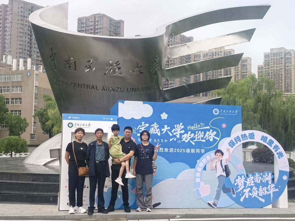 “巍峨高聳的雙子塔,碧水蕩漾的南湖,還有朝氣蓬勃的學生,都讓我感受到了民大獨特的魅力!”提及對中南民族大學第一印象,經(jīng)濟學院2025級新生李若瑜激動地分享著她的感受,這片位于南湖之畔的校園,對她而言不僅是求學之地,更是一條貫穿家族命運、連接鄉(xiāng)村與高等學府的精神紐帶。