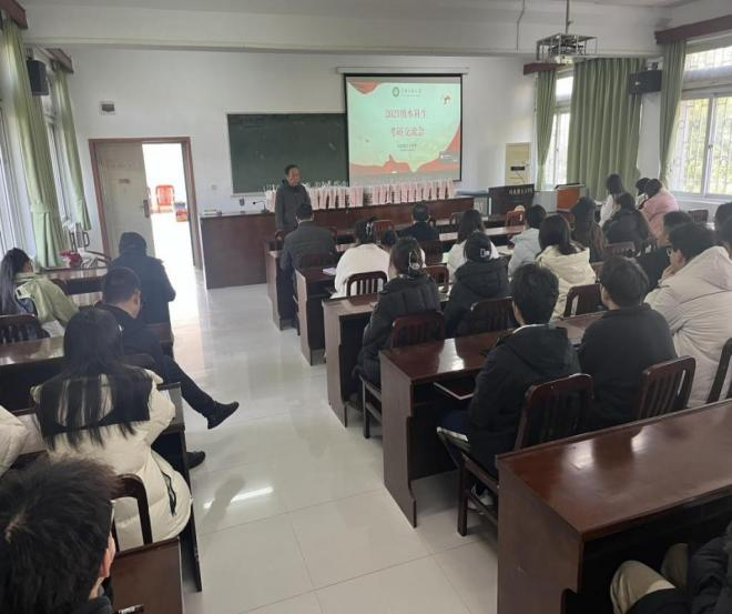 為鼓舞考研學子士氣,引導他們紓解備考壓力、調整備考心態、堅定考研信心,12月6日,馬院召開以“研途相伴,共赴星河”為主題的2025屆本科畢業生考前動員會,并為考研學子發放了“愛心大禮包”。馬院領導李建青、朱磊,畢業年級輔導員、班導師,學院有關教師以及考研學子參加動員會。