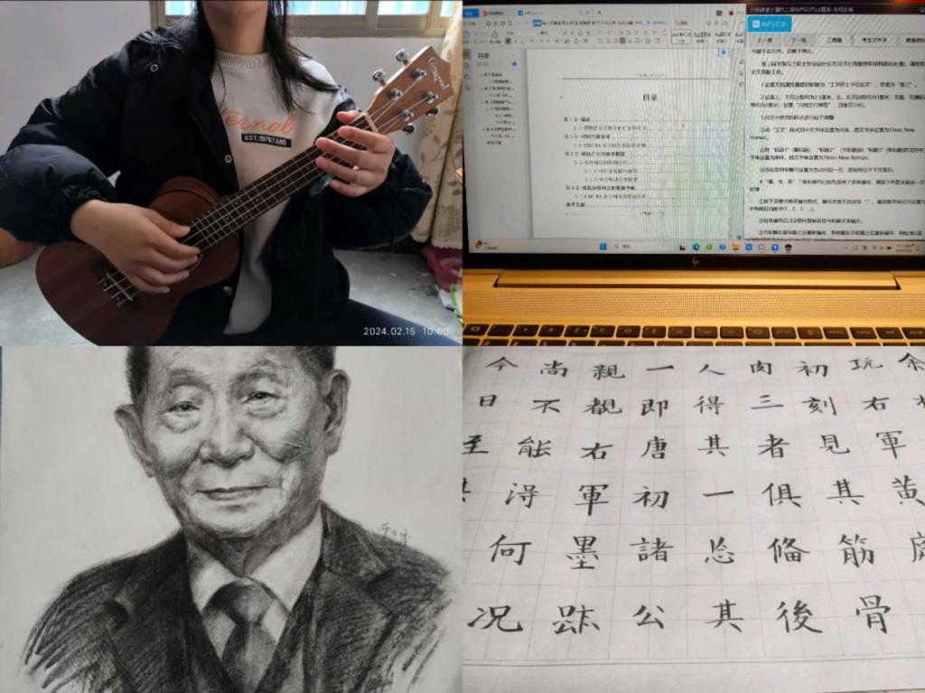 文體計劃的內容豐富,形式多樣。同學們可以自選書法、繪畫、樂器等技藝進行練習或者學習專業所需的工作技能。活動期間,小伙伴們堅持每天進行打卡。有的小伙伴以熱愛為動力,在練習樂器、舞蹈的過程中感受堅持的力量;有的小伙伴拿起了毛筆和畫筆,在書法繪畫藝術中培養審美情趣;有的小伙伴則在為考計算機二級做準備,學習辦公軟件、C語言、Python語言程序設計等,努力發展新技能。在互相的勉勵和督促中,同學們不再局限于課程學習,努力發展各類興趣愛好,在不同的領域里追求更好的自我。