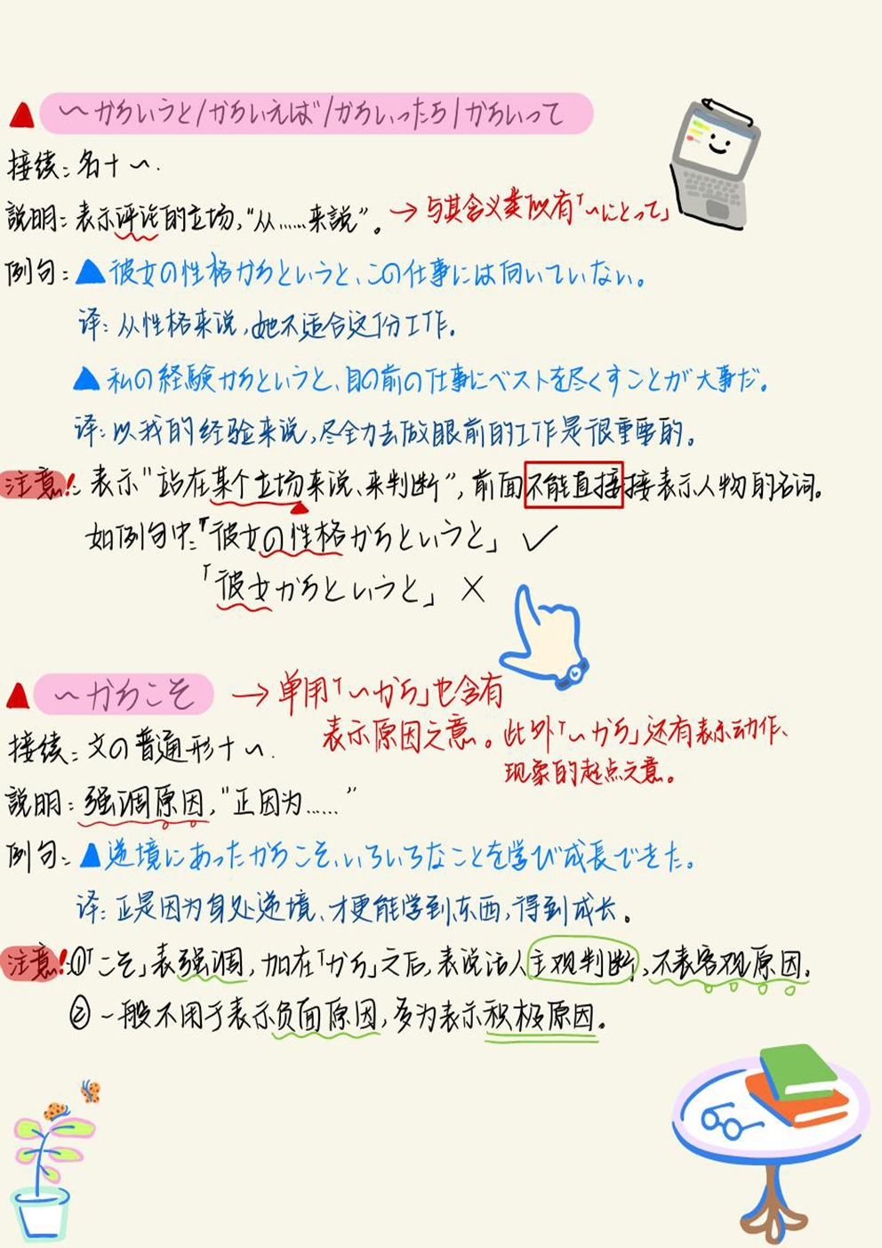 一面寫知識點,一面寫代表性的例題,不會做題時可以更加容易地找到知識點。