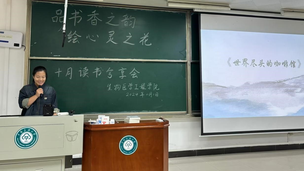 第四位分享者是生醫(yī)類2407班的王子軒同學。她帶來的分享是《世界盡頭的咖啡館》一書。她引用書中的內(nèi)容,探討了人應該如何度過自己的一生。她強調(diào),命運掌握在我們自己手中。我們永遠不應該因為其他人或事而失去對自己命運的掌控。