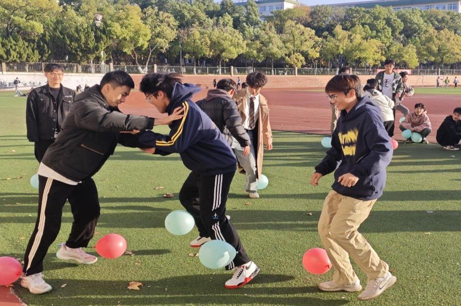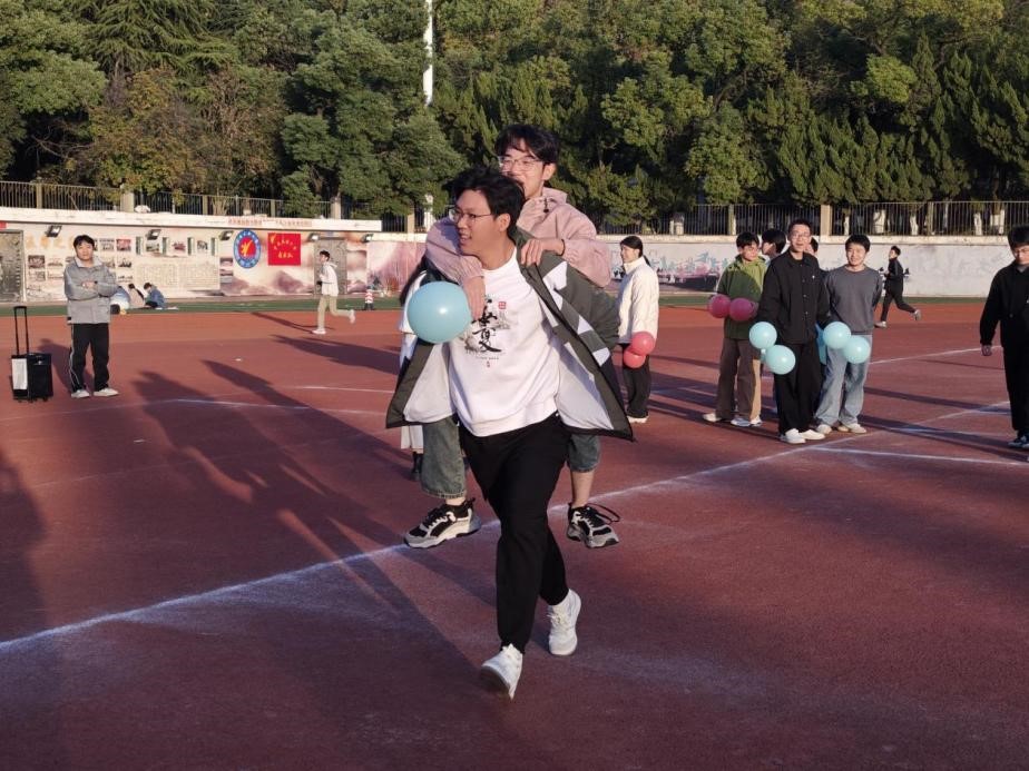 本次活動共分為三個內容。首先進行的是緊張刺激的“踩氣球”游戲。參賽的寢室長們分為兩隊互相追逐,在氣球爆炸的聲音中,大家迅速卸下了壓力,沉浸在純粹的歡樂氛圍中。緊接著是激烈的拔河比賽,隨著哨聲的響起,每一位參賽者都全力以赴,將平日的壓力化作力量,奮力拉動繩索,為團隊爭取榮譽。最后進行的是“氣球運送”比賽,兩位寢室長組成一組,背著搭檔攜手沖向終點,展現了極佳的默契與團隊精神。