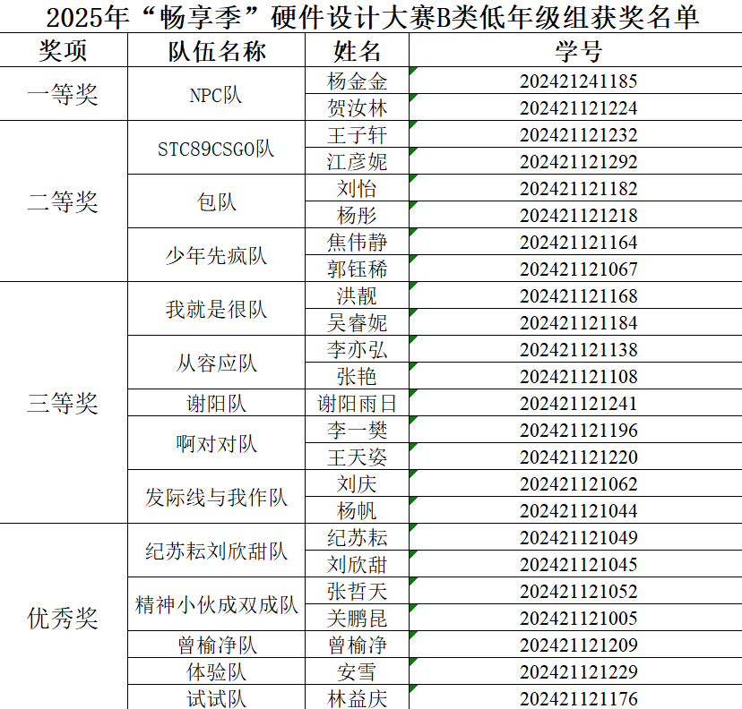 本次比賽由羅媛媛老師擔任硬件設計大賽評委及指導老師,軟件設計大賽則由諶先敢老師擔任評委,在同學們的積極參與和老師們的精心組織下,圓滿落下帷幕。