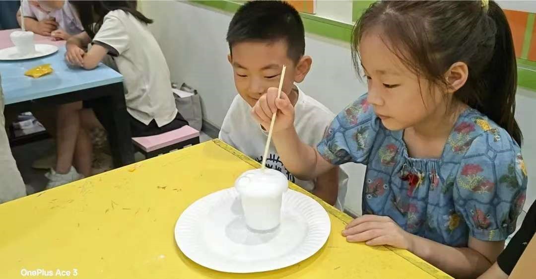 隊(duì)員們發(fā)揮專業(yè)所長(zhǎng),精心設(shè)計(jì)了豐富多彩的特色課程:“科學(xué)大爆炸”奇趣無限:“白色瀑布”、“特工密信”等神奇實(shí)驗(yàn)引爆課堂!孩子們驚嘆連連,掌聲不斷,一顆顆探索科學(xué)奧秘的種子悄然萌芽,“我要一直讓老師上課!”、“我以后也要學(xué)化學(xué)!”的童言稚語是最動(dòng)聽的反饋。