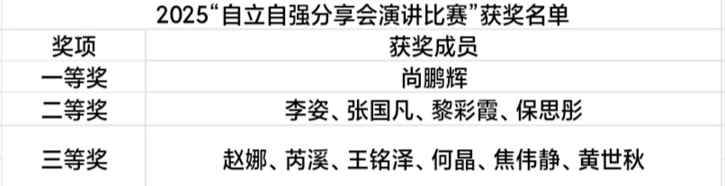 經評審,此次分享會選出院級一等獎1名,二等獎4名,三等獎6名。獲獎名單如下: