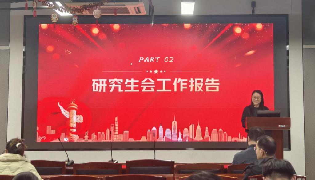 隨后,第十四屆研究生會代表彭思玉上臺作工作報告。在過去的一年里,研究生會始終秉持“自我管理、自我教育、自我服務(wù)”的理念,堅守“全心全意為同學(xué)服務(wù)”的宗旨,以熱情飽滿的態(tài)度積極服務(wù)于學(xué)校、學(xué)院以及全體學(xué)生。主要工作成果包括:成功舉辦了第九屆“動起來”生物醫(yī)學(xué)工程學(xué)院研究生趣味運動會,為同學(xué)們提供了展示自我、增進交流的平臺;積極推進校研會第三屆“民大的春天”春日游園和晚會的順利舉辦,豐富了校園文化生活;成功選舉出中南民族大學(xué)第五次研究生代表大會的院級代表,展現(xiàn)了學(xué)院研究生的良好風(fēng)貌;助力生物醫(yī)學(xué)工程學(xué)院研究生復(fù)試工作的順利開展,為學(xué)院人才選拔提供了有力支持;以及認真整理學(xué)院學(xué)位點評估材料等。彭思玉代表第十四屆研究生會鼓勵新一屆研究生會傳承優(yōu)良傳統(tǒng),勇?lián)鷷r代使命,以更加昂揚的姿態(tài)續(xù)寫研究生會工作的新篇章。