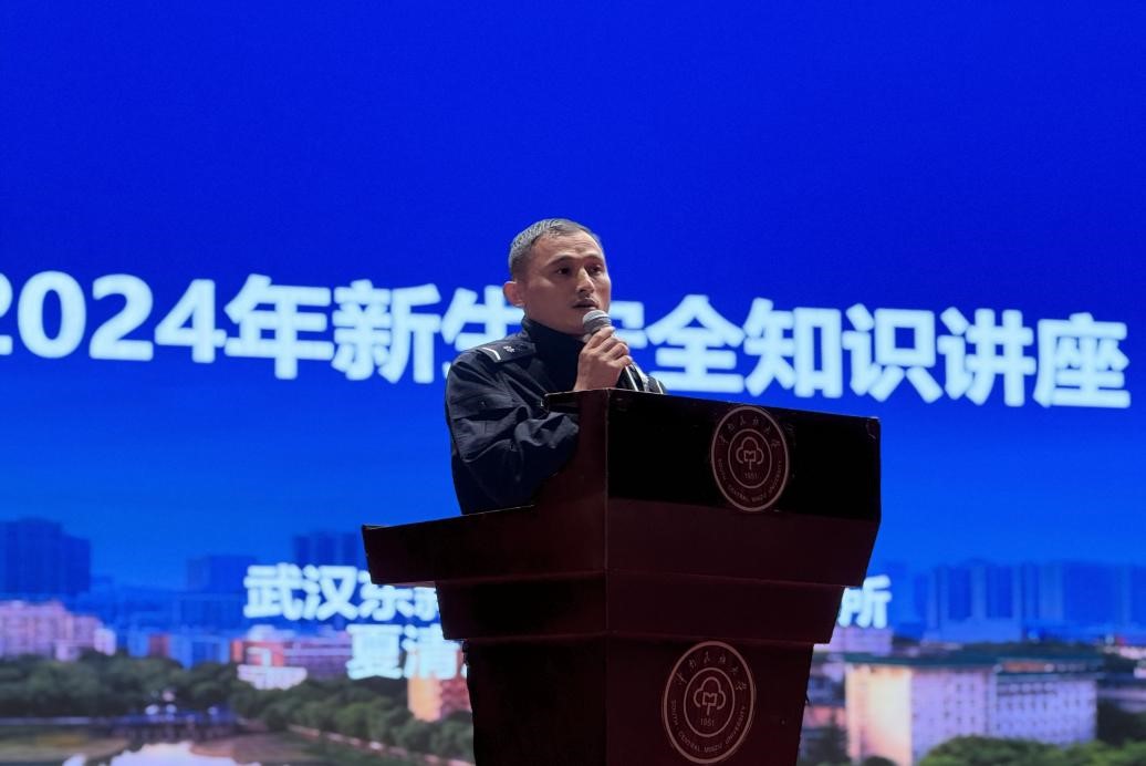接著,吳高濤警官以高校盜竊、火災及交通事故等真實案例為引,從財務管理、火災防控、交通安全、糾紛處理和電信詐騙五個方面,系統地為新生講解了校園安全常識。他通過播放真實監控視頻,讓新生們直觀感受到了校園中常見的安全隱患。吳警官提醒大家,在日常生活中要避免沖動行事,特別是在面對校園中可能出現的糾紛或沖突時,要保持冷靜,及時尋求幫助,確保人身安全。