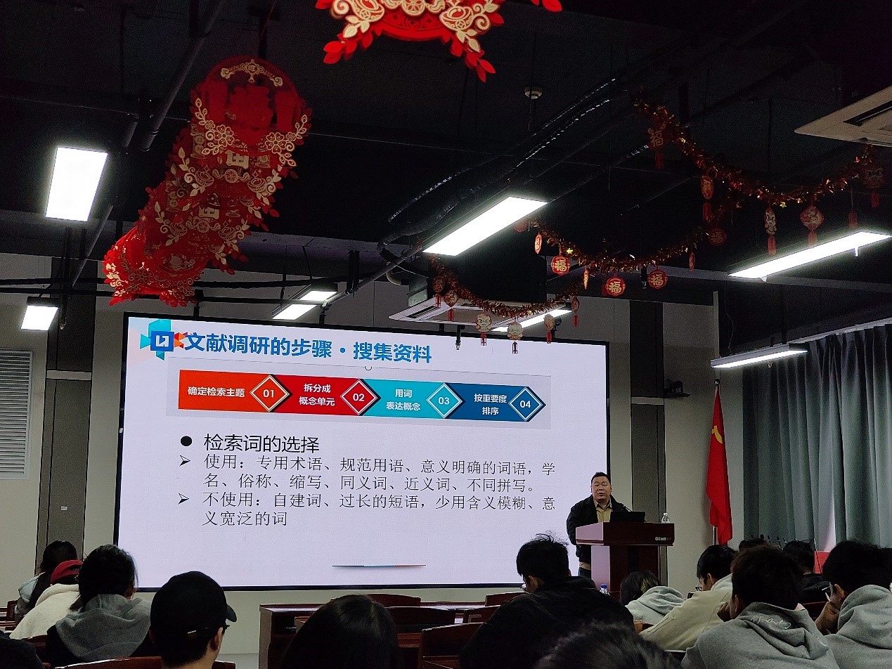 培訓(xùn)期間,吳老師首先以深入淺出的方式介紹了文獻(xiàn)檢索在學(xué)術(shù)研究中的重要性,強(qiáng)調(diào)其如同科研道路上的指南針,能夠幫助同學(xué)們少走彎路、高效前行。隨后,吳磊詳細(xì)講解了信息檢索的基本理論與實(shí)用技巧,從數(shù)據(jù)庫的選擇與使用,到高級(jí)檢索指令的運(yùn)用,全方面展示了信息獲取的高效途徑。最后,吳磊細(xì)致講解了如何在CRS核心論文庫里快速獲取文獻(xiàn)全文、評(píng)價(jià)期刊的學(xué)術(shù)影響力、高效選擇投稿期刊、追蹤期刊發(fā)文的研究方向以及便捷進(jìn)行校外訪問等實(shí)用信息獲取技巧和方法。