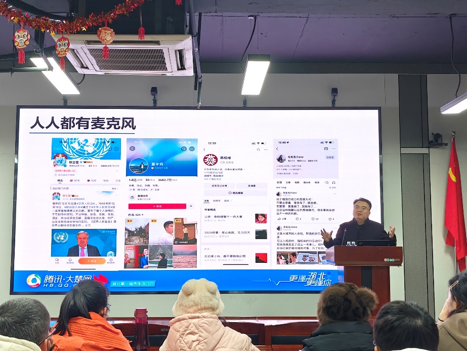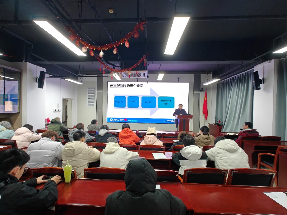 為進(jìn)一步加強(qiáng)學(xué)院宣傳工作,把準(zhǔn)宣傳方向,提升宣傳骨干業(yè)務(wù)水平,12月25日下午,我院在16號(hào)樓713舉辦宣傳工作專項(xiàng)培訓(xùn)。培訓(xùn)特邀騰訊大楚網(wǎng)副總編輯、我校2004屆校友王孝武作“以人的主體性賦能智能傳播”主題講座。院黨委書記賀銘、院長(zhǎng)陽(yáng)小飛、院黨委副書記王清華、副院長(zhǎng)陸雪松、學(xué)院部分老師以及學(xué)生記者團(tuán)全體成員參加,講座由賀銘主持。