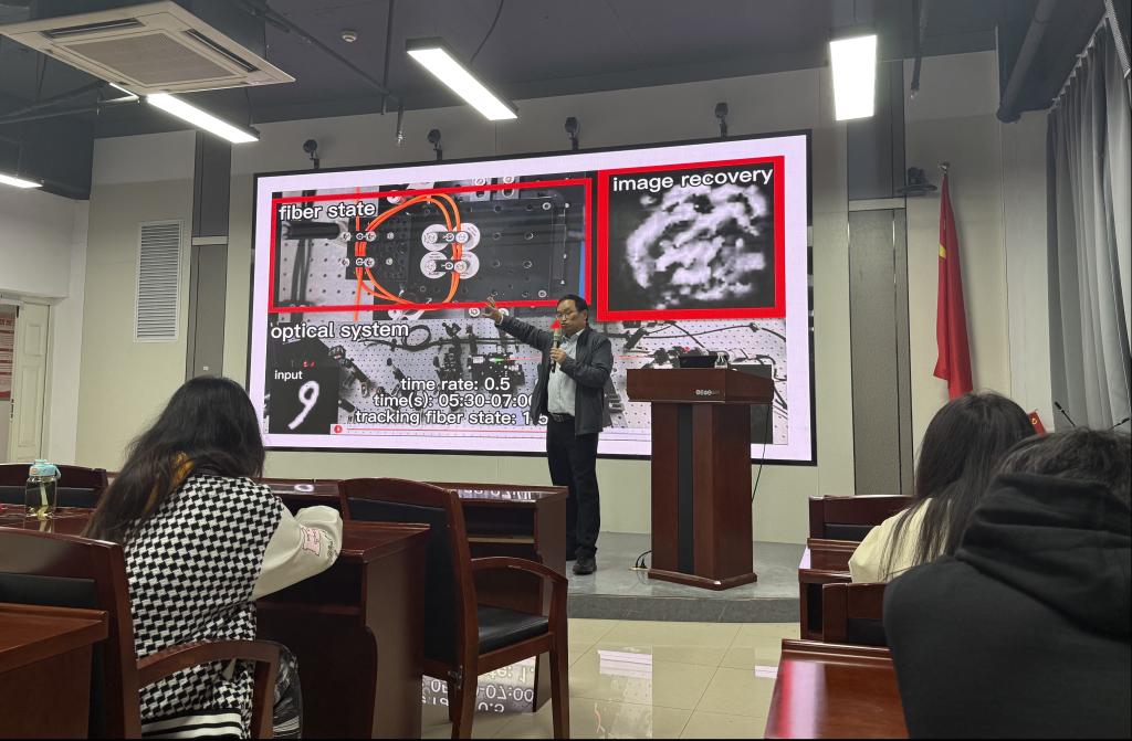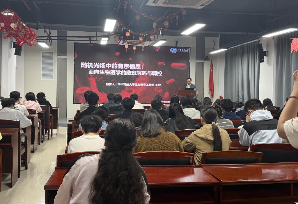 (文/何慶 圖/陳卉丹)2025年11月14日下午,我院在16號(hào)教學(xué)樓713會(huì)議室舉辦“耕耘金秋”學(xué)術(shù)報(bào)告會(huì),特邀華中科技大學(xué)王敬教授作題為《隨機(jī)光場中的有序信息:面向生物醫(yī)學(xué)的激光散斑解碼與調(diào)控》的學(xué)術(shù)報(bào)告。此次講座由院長陽小飛教授主持,部分導(dǎo)師和2024級(jí)、2025級(jí)研究生參加。