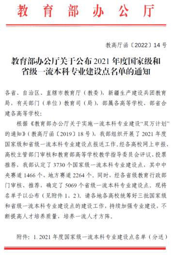 學(xué)院兩專業(yè)入選國(guó)家級(jí)、省級(jí)一流本科專業(yè)建設(shè)點(diǎn)