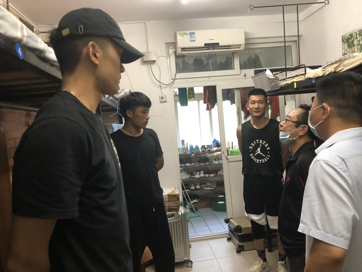按照學校秋季開學和防疫要求,體育學院黨總支第一時間召開黨政聯席會,專題討論并制定了學生寢室走訪和疫情防控值班制度,從9月7日開始,院領導班子所有成員全部帶頭深入到學生寢室,了解學生思想,解決學生困難,督促寢室衛生等。同時抽調了10名教工一起參與到學院疫情防控突發情況處置小組中,確保學院安全穩定。