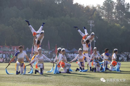 民族健身操隊、民族傳統(tǒng)體育表演隊(表演項目)屬湖北省民族傳統(tǒng)體育省級訓練示范基地。2014年至今參賽獲獎70余次,其中獲國家級冠軍4次,省部級冠軍36次,2019年全國第十一屆民族運動會獲表演項目金獎,實現(xiàn)我校學子在全國民族運動會上金牌零突破、并榮獲校2020年“校長特別獎學金”榮譽。多套原創(chuàng)民族操作品面向全省推廣普及并列為省民族運動會競賽項目。基地教練和優(yōu)秀隊員多次受邀擔任省民族操教練員、裁判員及社會體育指導員培訓導師和教練,為學生搭建展示特長、發(fā)揮才華的鍛煉平臺。