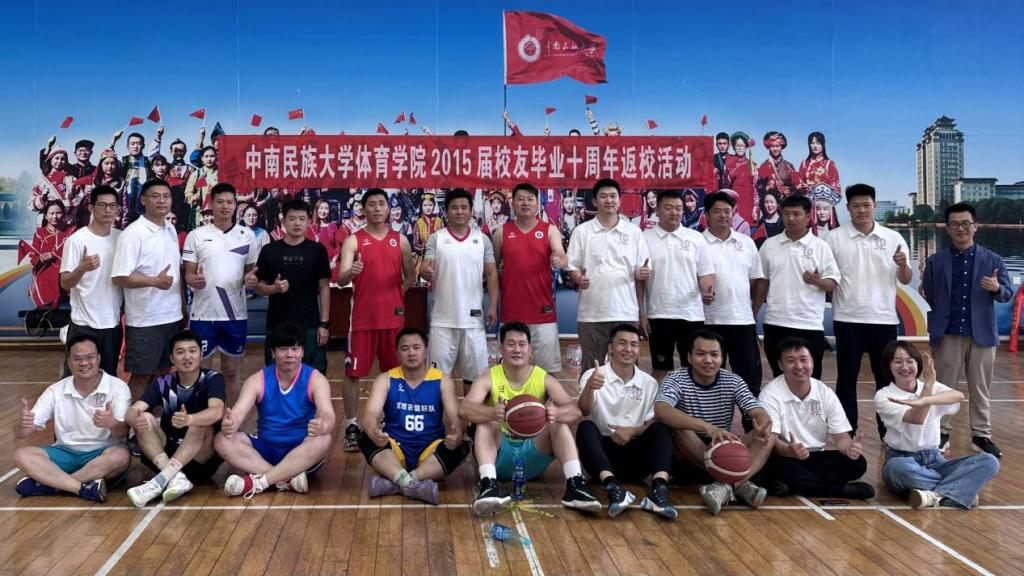 2025年5月3日,中南民族大學南湖畔迎來一場跨越十年的重逢。體育學院2015屆40余位校友身著統一紀念服重返校園,共赴這場畢業十周年之約。校友代表、學院全體領導班子成員及教師代表參加交流會。