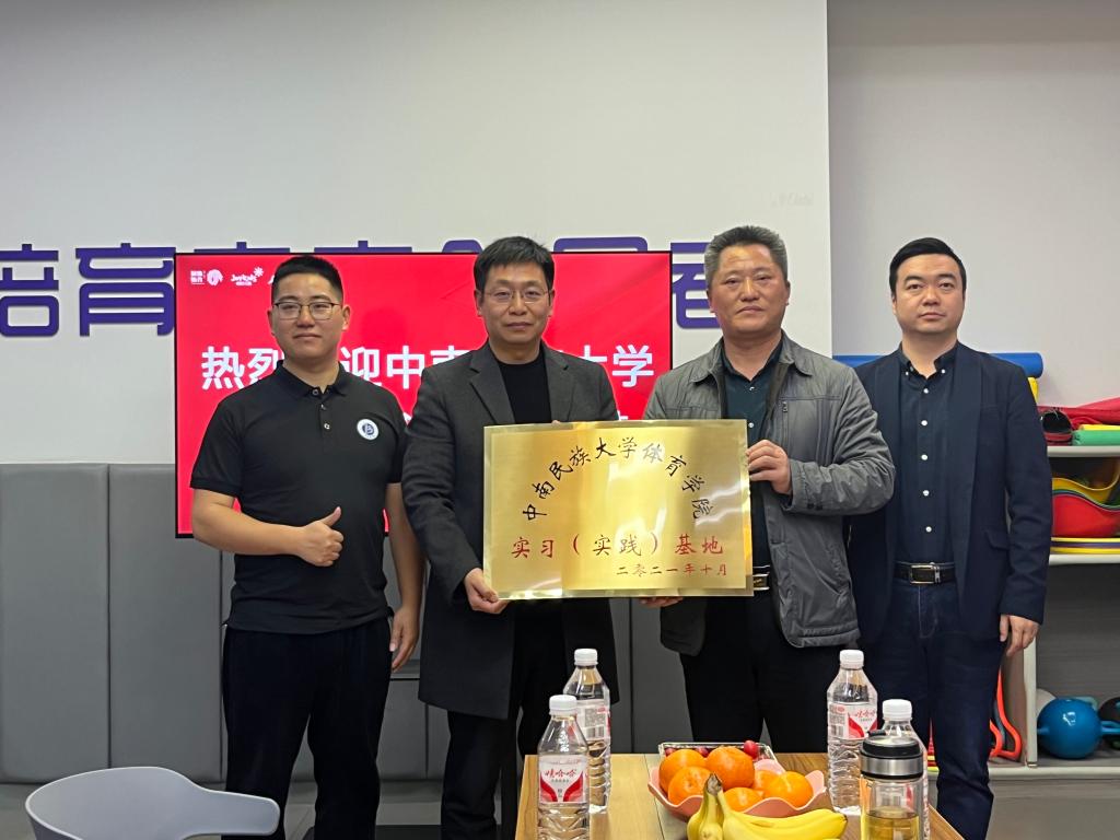 交談結束后,體育學院與貝體體育公司舉行了校企合作基地的授牌儀式。郭現偉表示,校企合作、產教融合是順應國家、社會發展需要,日后貝體體育將與中南民大體育學院進一步開展多層次、多形式、多領域的合作,實現校企資源的有機結合和優化配置,共同在創新人才培養持續發力,探索“產學結合、資源共享、互惠共贏“的發展之路,探索校企合作新模式。