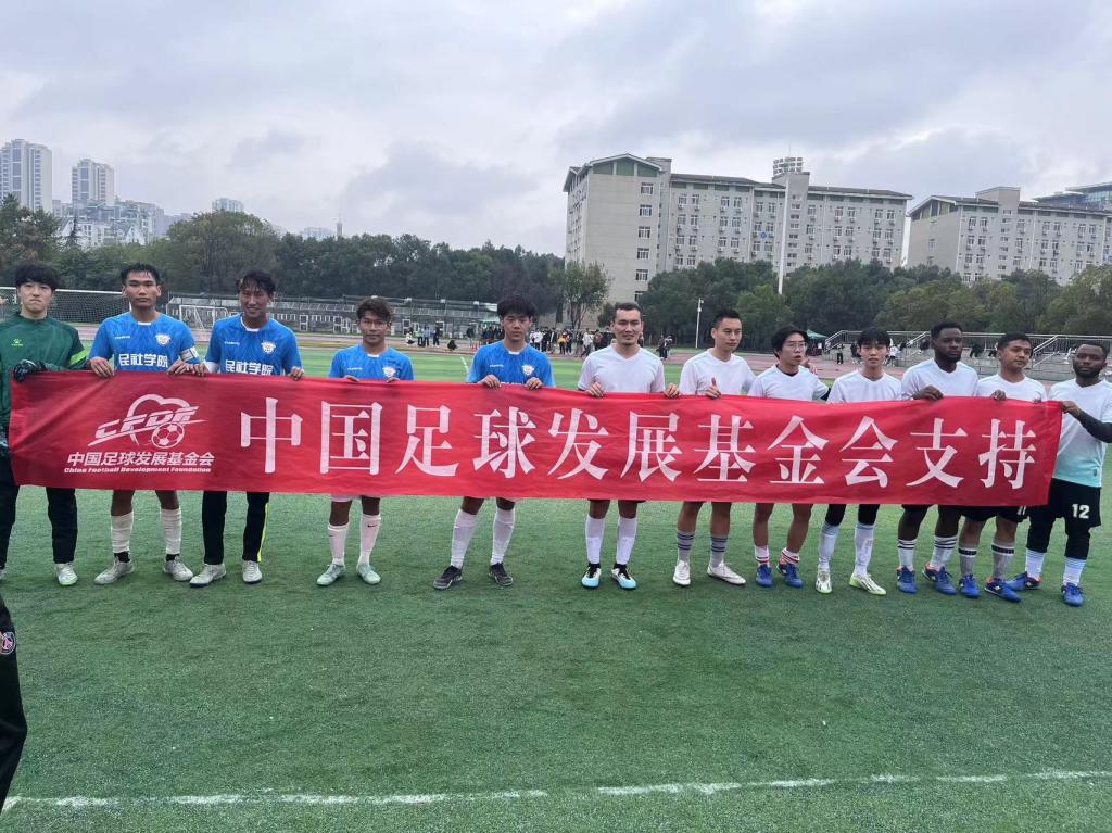 圖為民族學(xué)與社會(huì)學(xué)學(xué)院男子足球隊(duì)與國際教育學(xué)院男子足球隊(duì)合影。侯志濤攝