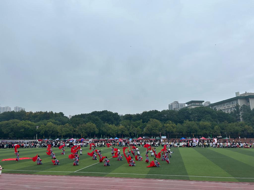 校舞龍舞獅隊帶來的舞龍舞獅表演拉開了文體表演的序幕。隊員們的動作矯健有力,龍頭高昂,獅身騰越,配合默契,引得全場歡呼。音樂舞蹈學院帶來群舞表演《多彩中華》,身著各民族服飾的同學舞姿曼妙,衣袂飄飄,充分彰顯了中華文化的獨特魅力。體育學院跳繩隊隊員們跟隨音樂,手中跳繩上下翻飛,演繹了一場傳統與現代、技藝與文化的體育視覺盛宴。一曲《我心中的紅》聲音漸強,校團委大學生藝術團的舞蹈演員揮手舞旗、旋轉跳躍,以青春的活力,細膩的情感,匯聚成了一曲動人的紅色樂章。