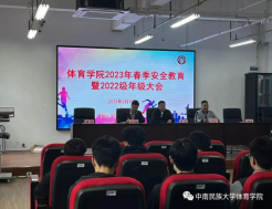 (通訊員:張蒙)為加強(qiáng)學(xué)生紀(jì)律和規(guī)矩意識(shí),強(qiáng)化責(zé)任擔(dān)當(dāng),堅(jiān)定理想信念,早日成長(zhǎng)成才,3月9日上午8時(shí)20分,體育學(xué)院2023年春季安全教育暨2022級(jí)年級(jí)大會(huì)于體訓(xùn)中心304-2會(huì)議室召開。本次大會(huì)由體育學(xué)院黨委副書記鄭重主持,輔導(dǎo)員唐文翰、班導(dǎo)師宋忠良及2022級(jí)全體學(xué)生參會(huì)。