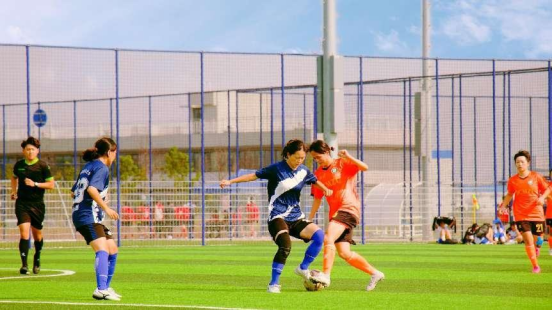 比賽中,我校女足身著紅衣,馳騁綠茵場(chǎng)。周宇軒攝