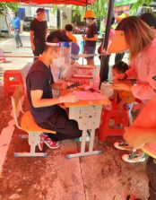 2020級王家龍認真收集檢測樣本,2019級鄧燁一趟又一趟地運送核酸樣本,2020級黃俊朽毅然投身到三亞最嚴重的區域,2020級符開雄在惡劣的臺風天氣下堅持完成志愿工作,還有更多的同學們在現場認真引導村民有序排隊,提醒村民戴好口罩,保持安全距離,解答村民問題,幫助村民完成核酸檢測信息填寫等。炎熱的天氣擋不住為人民服務的熱情,繁瑣的工作磨礪出他們強大的耐心與責任感!同學們全力投入、密切配合,組織村民快速、有序、安全地進行登記檢測等工作,為當地核酸檢測工作的開展做出了巨大的貢獻。他們忙碌的身影,已成為海南的一道亮麗的風景線!