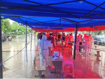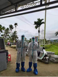 同學們積極響應當地政府號召,全身心投入到海南省各市縣任務點的人員組織、核酸采樣、樣本運送及檢測、服務保障等各項任務之中,每天工作六小時以上,加上海南的溫度高,恰逢臺風來臨,給志愿服務工作增加了很大難度。