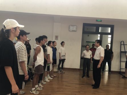 (作者:趙卿)7月20日,校黨委書記邊境、副書記、副校長宋發(fā)軍、校辦主任陳強勝、工會主席林晉一行4人到體育館慰問堅守崗位的教練員和參與集訓的運動員,并為他們送上了防暑降溫的慰問品和親切問候。