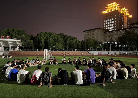 (通訊員:覃春耕)本學期期末臨近,各科教學接近尾聲,逐漸進入復習備考階段,根據體育學院統一部署,認真做好接下來同學們的復習備考、誠信應考工作,以及進行端午小長假與暑期前的相關安全事宜教育,2022年6月2日晚上8時,體育學院班導師汪如鋒副教授組織2020級1-2班全體同學,在校南區操場進行了主題為“推進扎實備考 倡導誠信應考”的草坪主題班會。
