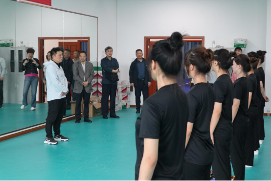 駱啟義一行來到民族健身操和表演項(xiàng)目訓(xùn)練場(chǎng)地,了解運(yùn)動(dòng)員的訓(xùn)練備戰(zhàn)情況,詢問他們的身體狀態(tài)和訓(xùn)練需求。并與民族健身操教練劉杏春、張津銘進(jìn)行深入交流,詳細(xì)了解運(yùn)動(dòng)員日常訓(xùn)練計(jì)劃、參賽動(dòng)作編排及隊(duì)員組成情況。隨后觀看了民族健身操和表演項(xiàng)目運(yùn)動(dòng)員的表演,他們對(duì)運(yùn)動(dòng)員的表現(xiàn)給予了高度評(píng)價(jià)。