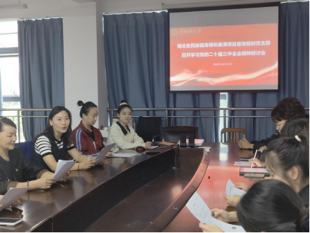 2024年10月20日下午,第十二屆全國(guó)少數(shù)民族傳統(tǒng)體育運(yùn)動(dòng)會(huì)民族健身操和表演項(xiàng)目湖北省代表隊(duì)臨時(shí)黨支部在17號(hào)教學(xué)樓203教室開展了主題為學(xué)習(xí)黨的二十屆三中全會(huì)精神研討會(huì),臨時(shí)黨支部成員、黨小組成員、教練員和運(yùn)動(dòng)員代表出席。研討會(huì)由黨支部書記高文潔老師主持。本次會(huì)議旨在貫徹落實(shí)湖北省體育局副局長(zhǎng)暨湖北省第十二屆全國(guó)少數(shù)民族傳統(tǒng)體育運(yùn)動(dòng)會(huì)組委會(huì)秘書長(zhǎng)駱啟義于10月7日檢查代表隊(duì)時(shí)提出的相關(guān)要求,通過(guò)學(xué)習(xí)領(lǐng)會(huì)黨的二十屆三中全會(huì)精神,加強(qiáng)管理、科學(xué)訓(xùn)練,引導(dǎo)全體運(yùn)動(dòng)員統(tǒng)一思想、凝心聚力、積極備戰(zhàn)。