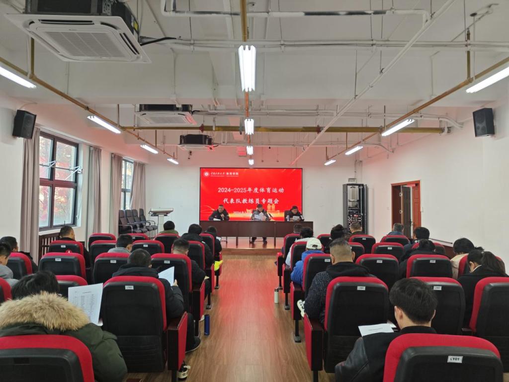 12月24日上午體育學院在體育訓練中心304召開2024-2025年度體育運動代表隊教練員專題會,體育學院領導班子成員、運動隊工作領導小組全體成員及各運動隊教練參會,會議由張懷成主持。