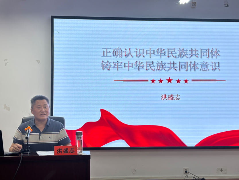開班儀式結束后,黨委書記洪盛志以“正確認識中華民族共同體,鑄牢中華民族共同體意識”為題,講授第一堂黨課。他系統闡釋了中華民族共同體的深刻內涵、鑄牢中華民族共同體意識的重大意義,結合大學生實際,明確推進中華民族共同體建設的實踐要求,引導同學們深刻理解中華民族多元一體的本質特征。洪盛志書記以豐富的歷史案例與鮮活的現實故事,生動展現中華民族共同體的強大凝聚力,讓同學們深受觸動。