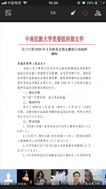 4月27日下午,教工第一支部組織召開四月份主題黨日視頻會,學習傳達上級精神,根據學習領會暢談學習心得,同時布置了教學實踐任務。教工第一支部全體黨員參加學習,會議由黨委副書記、支部書記陳曉希主持。