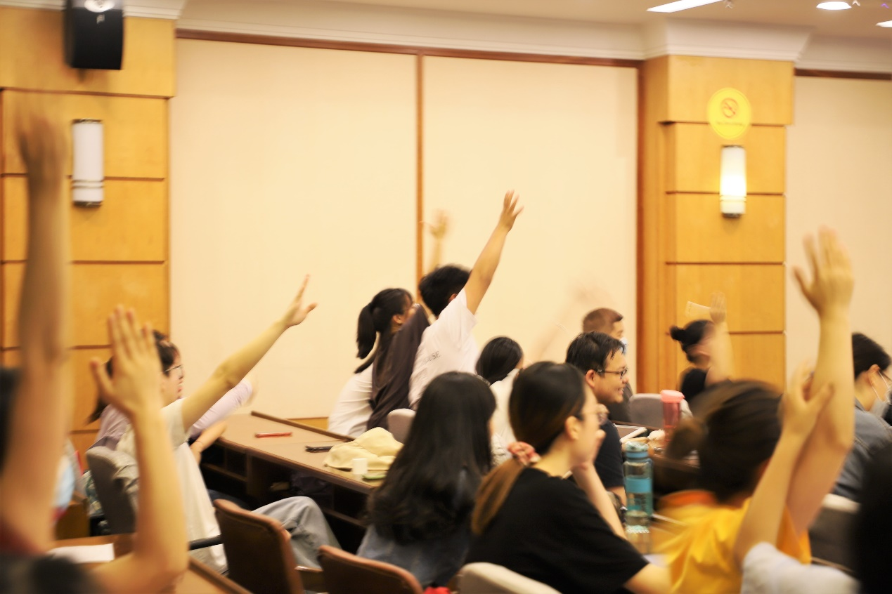 觀眾踴躍參與答題。 藍葉萱 供圖 最終教工第二黨支部代表隊榮獲一等獎;第三、第四黨支部代表隊榮獲二等獎;第一、第五黨支部代表隊榮獲三等獎。