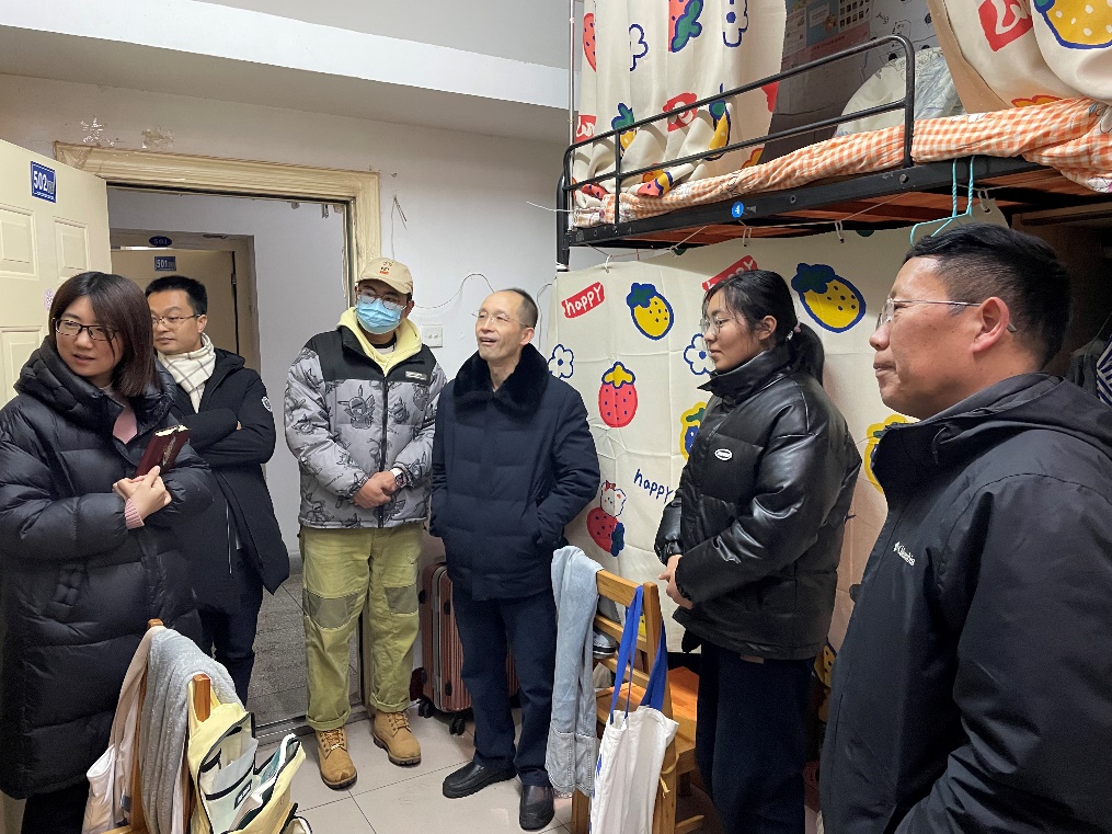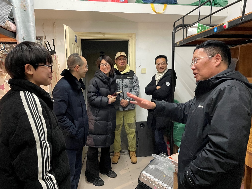 老師們首先對學生的住宿情況進行了細致了解。李春雷細心叮囑同學們:“近日仍是低溫雨雪冰凍天氣,同學們一定要準備好合適的衣物,注意保暖、防寒防滑。健康與安全永遠是第一位的!”他還表示,學院將全力為大家做好后勤保障,擔任好學生的后盾角色。