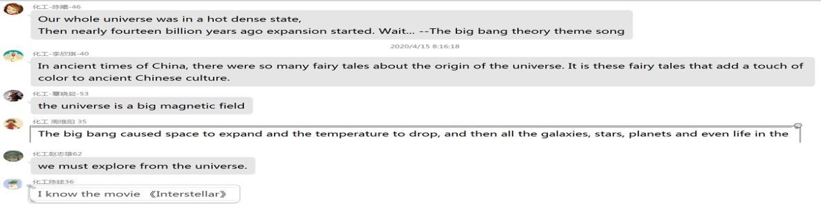 大英三室于2月17日開始第一周遠程授課,到現在已經開展了11周教學工作。11周的教學實踐中,大英三系五位老師經常在教學工作群討論線上授課過程的問題,比如線上授課如何避免教師主宰的滿堂灌問題,老師們設計好課程授課方案,首先提前布置課堂發言任務,學生在課堂有準備的發言中體驗英語使用,同時也有機會展現對所閱讀文章的深入思考。