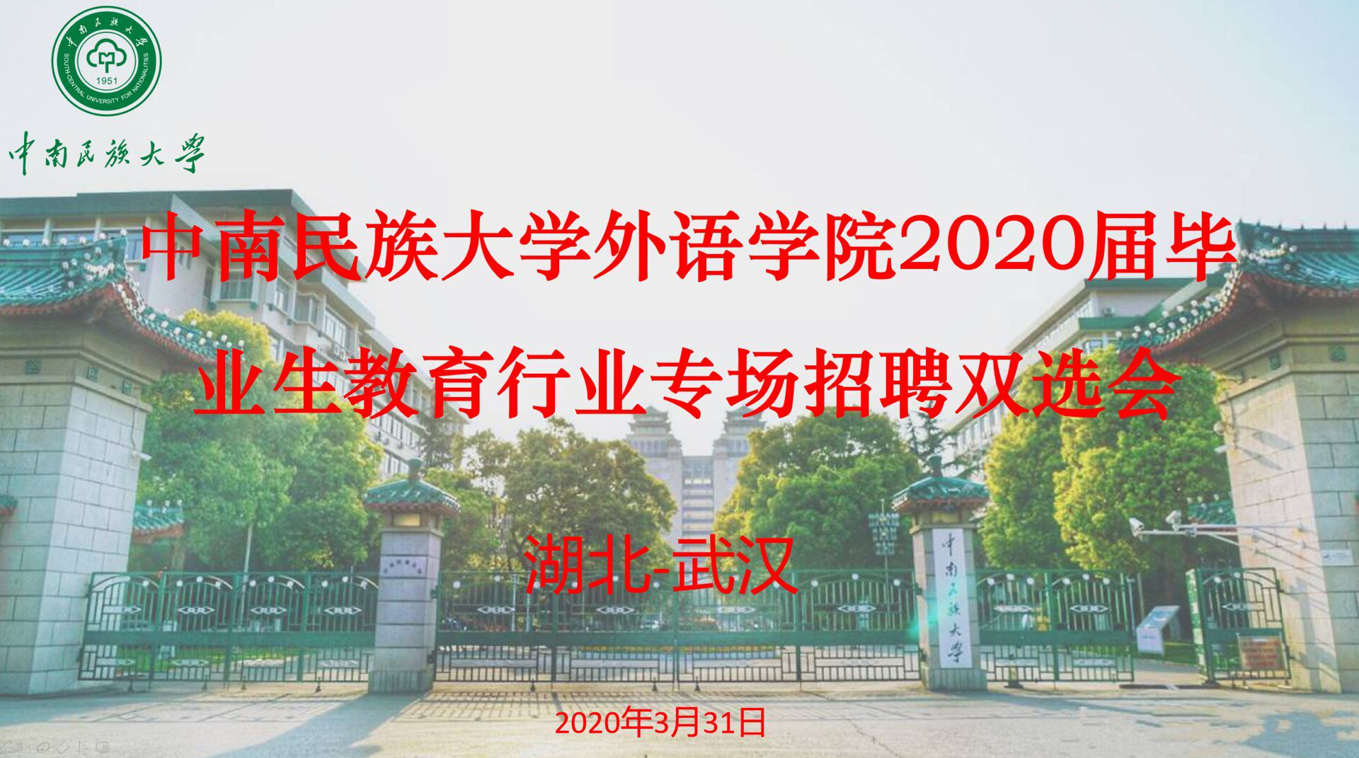 3月31日下午,外語學院舉辦2020屆畢業生教育行業線上專場雙選會。經過近一個月的緊張籌備,最終邀請五家優質企業進行宣講。