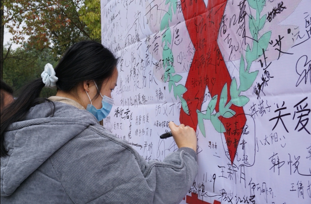 2020年12月1日第33個“世界艾滋病日”之際,我院青年志愿者協會緊密聯系“攜手防疫抗艾,共擔健康責任”(Global solidarity shared responsibility)主題,于11月29日在一、二食堂之間舉辦“世界艾滋病日”系列活動,旨在進一步宣傳普及艾滋病防治知識,協助青年增強自我保護能力,促進其健康成長。 此次“防艾節”活動將防艾知識與趣味游戲相結合,共設“點亮紅絲帶”、“趣味保齡球”、“防艾知識問答”三個游戲關卡。同學們運用自己所掌握的艾滋病預防知識參與游戲,即可獲得相應獎勵,活動志愿者在游戲過程中積極為前來參加活動的同學們宣傳普及各項艾滋病防治知識與技能。 活動期間,簽名大展板與手繪彩畫引人注目,參與者在活動之余,在展板上簽下自己的名字并寫下寄語表達預防艾滋病的決心。除此之外,在答題過后,參與者在志愿者們提供的畫布上用畫筆進行繪畫,此環節大大增強了活動的趣味性,參與度極高。本次“世界艾滋病日”系列活動以愛心防艾禁毒志愿服務隊吉祥物“桃子”的加入為亮點,活動參與人員積極與吉祥物“桃子”進行合影,來表達對艾滋病患者的關愛以及對防艾事業的關注。 本次“世界艾滋病日”系列活動,深刻貫徹落實了《“健康中國2030”綱要》,踐行了《中國遏制與防治艾滋病“十三五”行動規劃》系列文件要求,有利于同學們主動關注并學習艾滋病防治知識,樹立個人健康責任意識。 (審核:陳曉希)