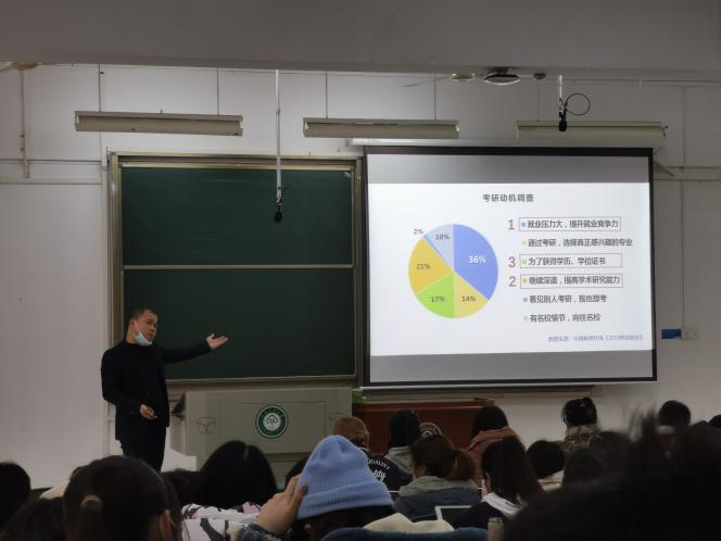 之后,熊鵬老師從學科選擇、院校選擇、專業選擇等方面詳細介紹來考研應當如何規劃,提醒同學們要將研招網數據與目標院校官網數據結合分析,提前做好理想型、目標型、保底型三種選擇,增加成功幾率。同時,老師還指出,在備考過程中,信息交流十分重要,建議同學們多與老師、前輩溝通,學會利用資源,拓寬人脈,避免出現信息閉塞現象。