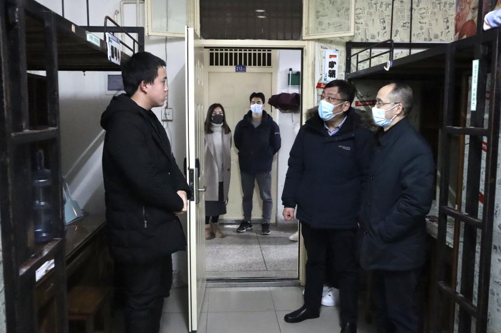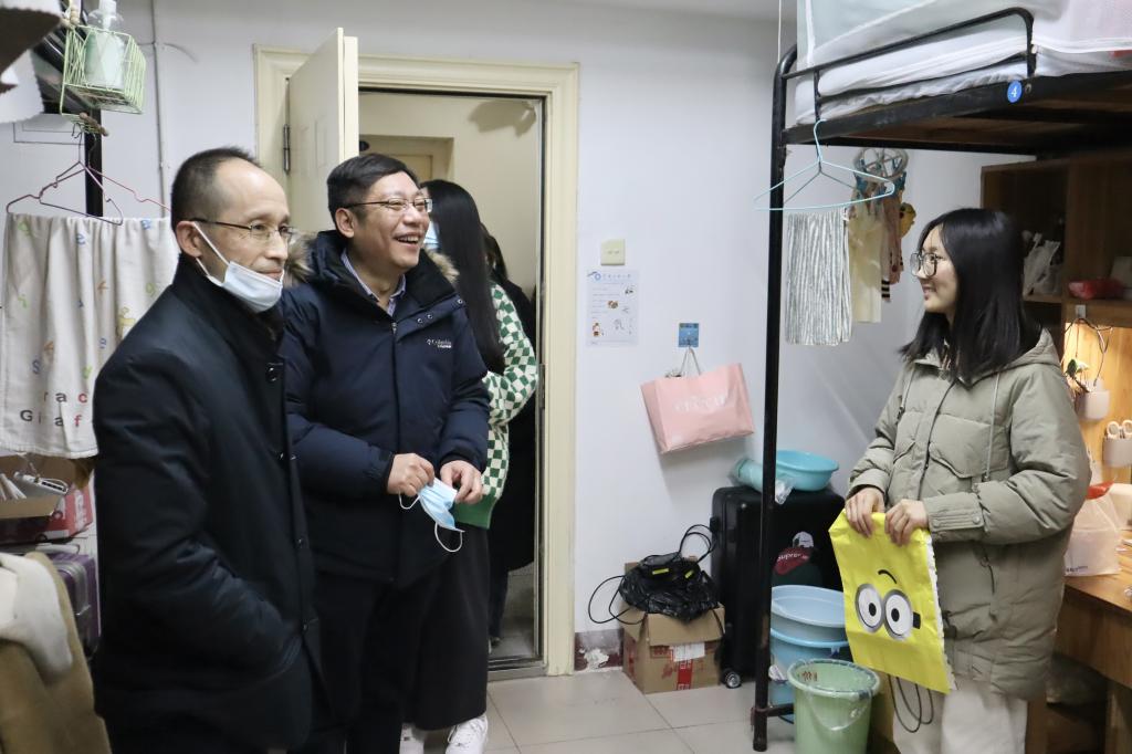 2月21日開學(xué)第一天晚,黨委書記戴迎峰及黨委副書記、院長易立新率全體班子成員和教師代表前往學(xué)生宿舍進(jìn)行走訪。