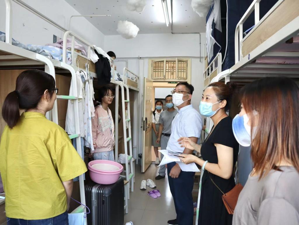 9月5日下午,我院黨委書記戴迎峰、黨委副書記陳曉希、副院長皋峰、2019級輔導員陳驪姍、2022級輔導員劉甜甜及新生班助代表張慶、楊雯前往學生宿舍進行了走訪。 老師們檢查了寢室衛生情況,詢問大家的假期生活和學業安排,并聽取了學生們對學院各方面工作提出的意見和建議。在與大四學生們交談時,老師們就學習規劃、實習情況和考研意向給出了切實的建議和指導。走訪新生寢室的過程中,老師們親切地同新生交談,詢問同學們是否適應學校的環境,并認真傾聽了他們的想法。同時,他們也鼓勵同學們要志存高遠、相互幫助、共同進步。 我院領導走訪學生宿舍 舒采強攝 老師們的慰問給學生帶去了感動,也拉近了老師們與學生之間的距離。同學們紛紛對老師的關心慰問表示感謝,并表示新學期一定會以飽滿的熱情投入到學習生活中來,不辜負老師和家長對自己的期望和關心。 (責編:劉欣睿 審核:陳曉希 上傳:文彬琪 發布時間2022-9-17) |