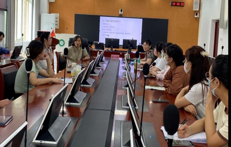 譚校長首先結(jié)合一線教學(xué)實例,指出科研能力對教師發(fā)展和成長的重要性,她說到,新時代的教師不僅僅需要做好教書育人的工作,更重要的是能夠在教育教學(xué)的過程中發(fā)現(xiàn)問題,帶著問題進(jìn)行研究,從而做到教-學(xué)-研一體化;隨后,針對什么樣的研究才是有意義的研究,譚校長結(jié)合社會熱點和一線教師的親身體會進(jìn)行了分享。在交流環(huán)節(jié),同學(xué)們提出了近期在論文選題中的困惑和研究中遇到的困難,譚校長從專業(yè)角度和研究的可行性等層面進(jìn)行了耐心解答。皋峰老師、劉永清老師和舒靜老師也為同學(xué)們提供了一些專業(yè)建議。劉老師還就論文開題和后期的專業(yè)實習(xí)提出要求,希望同學(xué)們能夠找到切實可行的主題和角度開展研究,在實習(xí)的過程中帶著問題去思考,帶著收獲歸來;不斷地發(fā)現(xiàn)問題、提出問題、解決問題,從而促進(jìn)自身能力的逐步提升。