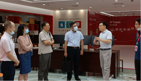 在公司領導陪同下,學院的領導和老師們仔細的參觀了公司的研發部門、產能部門和黨員活動場所。教育事業部總經理張華、教育事業部資源總監靳偉分別就語聯網翻譯平臺、智能翻譯教學與創新實踐平臺、傳神翻譯能力測試系統、傳神語視界、多語智能教學同傳平臺等進行了演示介紹,演示過程中,雙方不斷就相關問題進行了交流。